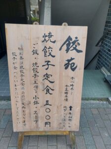 渋谷から宮益坂を上がって行くと、青山学院大学の手前の手前の手前の手前の手前の手前くらい、地下1階に、美味しい餃子屋さんがあるということで行ってみました。