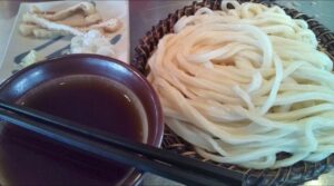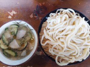 打ち立て・ゆでたてのうどんは、顎が痛くなるほどのコシの強さ。