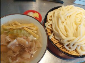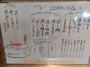 ③冬季限定でひもかわ麺の煮込みうどんもあるよ。