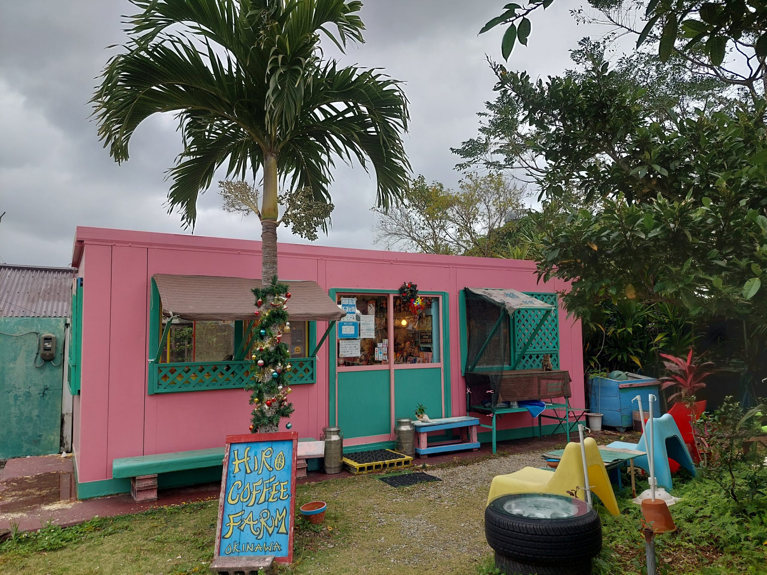 東村(ひがしそん)を車で北上していくと、右手にポップでCUTEなピンク色をしたカフェが突如として現れます。