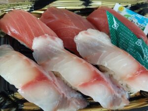 ・キハダマグロ・・・薄紅色のサッパリ味。やや硬め。脂は少ない。